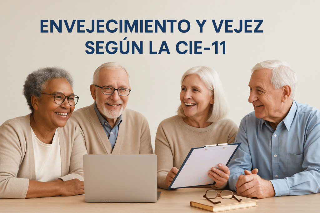 Aunque el envejecimiento no es una enfermedad, la CIE-11 incluye numerosos códigos que permiten abordar sus efectos clínicos, funcionales y sociales. Los más relevantes incluyen: